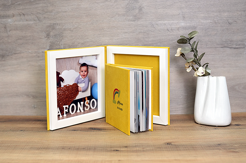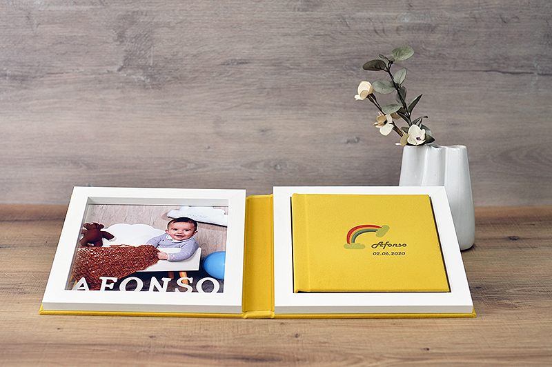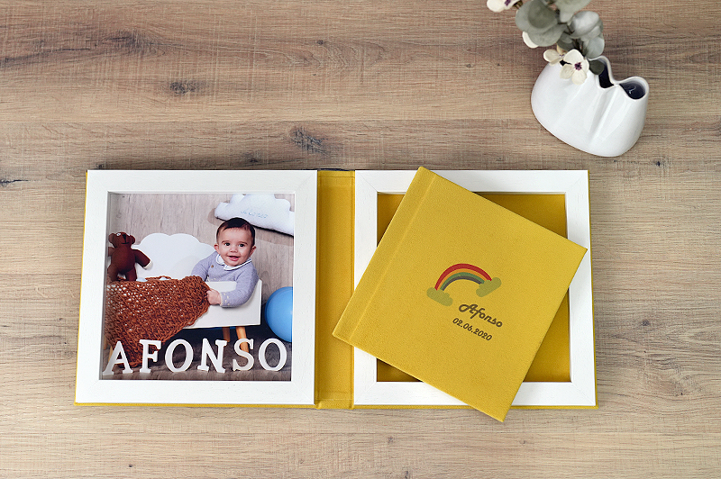 A caixa, confeccionada no mesmo material do álbum e com a opção de incluir uma foto no interior, complementa o conjunto com um acabamento impecável, projetado para encantar e surpreender seus clientes.