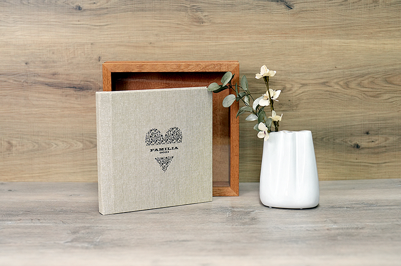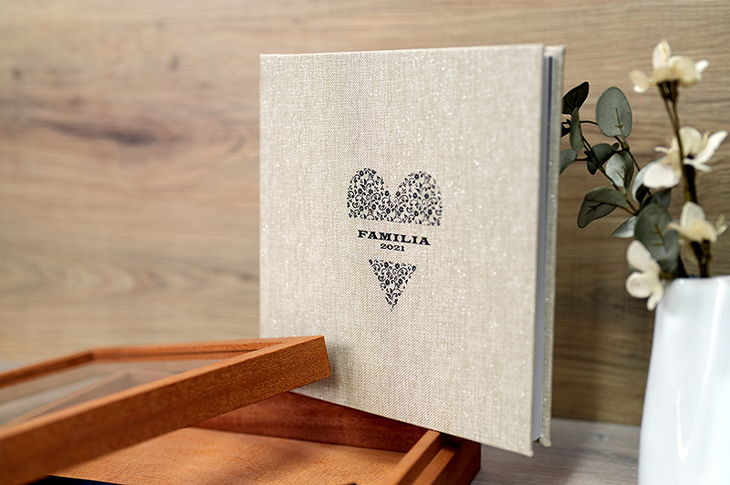 A tampa se desprende completamente, criando duas estruturas simétricas que permitem que o álbum se encaixe com perfeição.